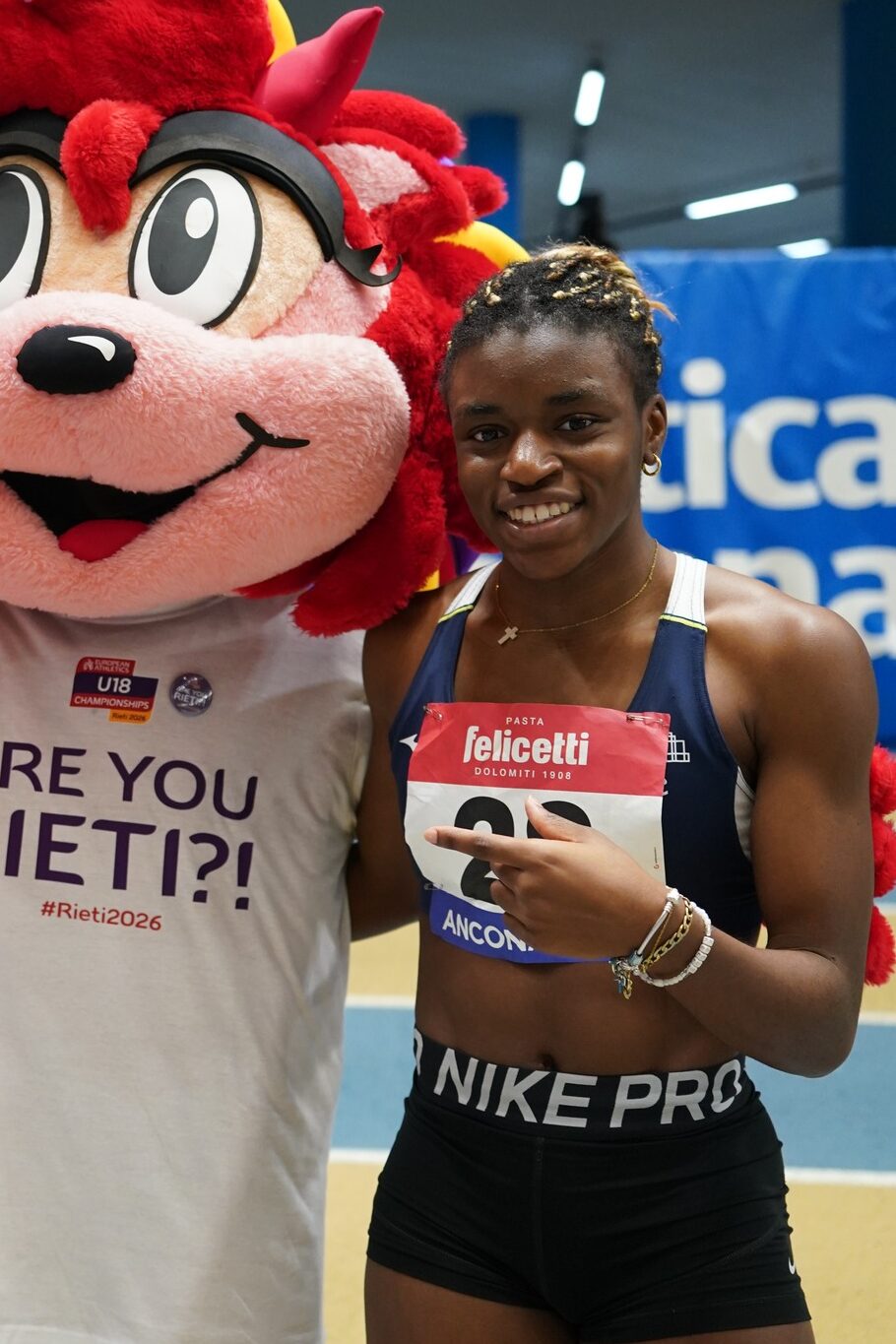 Due atlete per tre ori. I Campionati Italiani indoor Allievi/e ci regalano tre titoli italiani, tre splendide vittorie tricolori e la consapevolezza, anzi la conferma di due grandissimi talenti. Ad Ancona, sabato 14 e domenica 15 febbraio, Kelly Doualla lascia poco spazio alle avversarie. Per la nostra atleta la sfida è solo con il cronometro, alla ricerca del tempo giusto nei 60 metri (7.20) che le dia il pass per i Campionati Mondiali indoor.